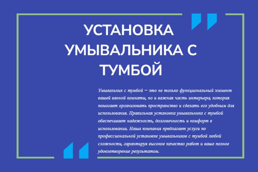 Умывальник с тумбой – это не только функциональный элемент вашей ванной комнаты, но и важная часть интерьера, которая помогает организовать пространство и сделать его удобным для использования. Правильная установка умывальника с тумбой обеспечивает надежность, долговечность и комфорт в использовании. Наша компания предлагает услуги по профессиональной установке умывальников с тумбой любой сложности, гарантируя высокое качество работ и ваше полное удовлетворение результатом.